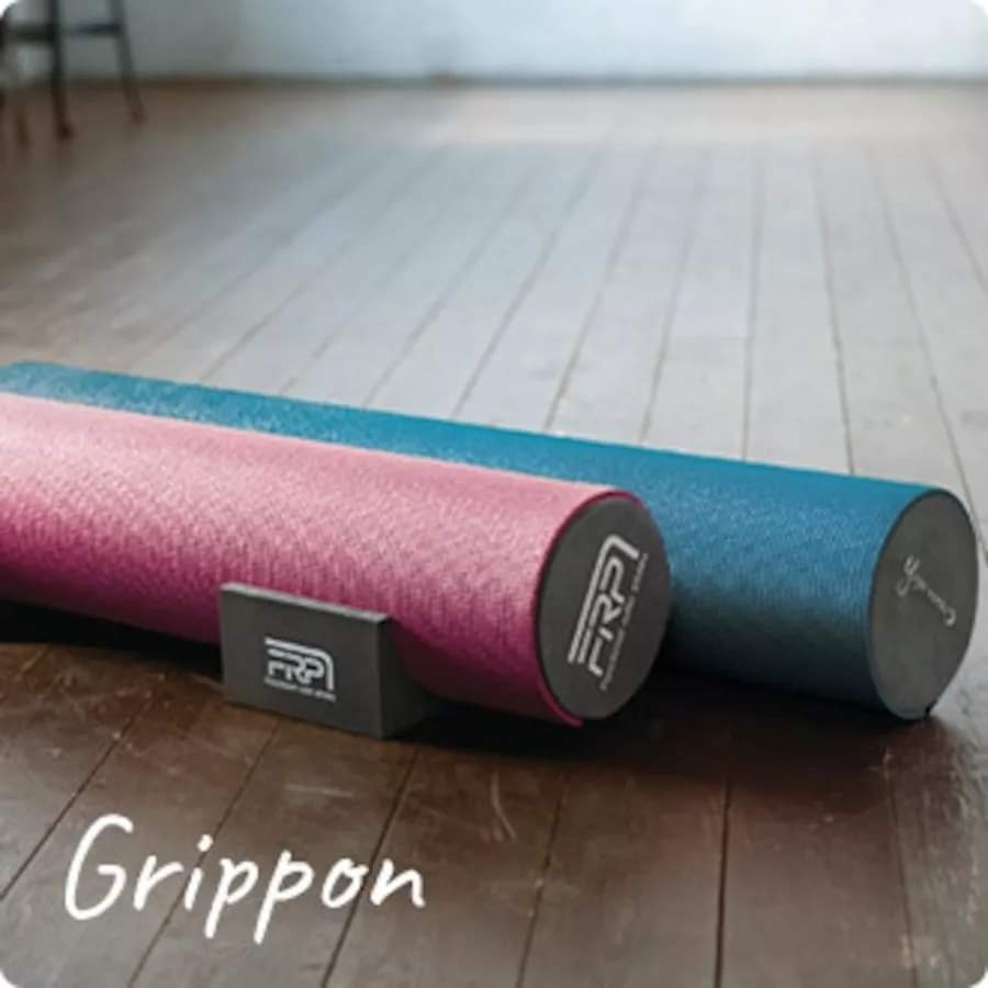 従来のピラティスエクササイズでは、高価なエクイップメントが必要とされるため恩恵を受けられる人が限られていました。GRIPPONE(グリッポン)は、ローラーとマットの滑り止め機能が一体化した新発想のピラティス・ローラー。