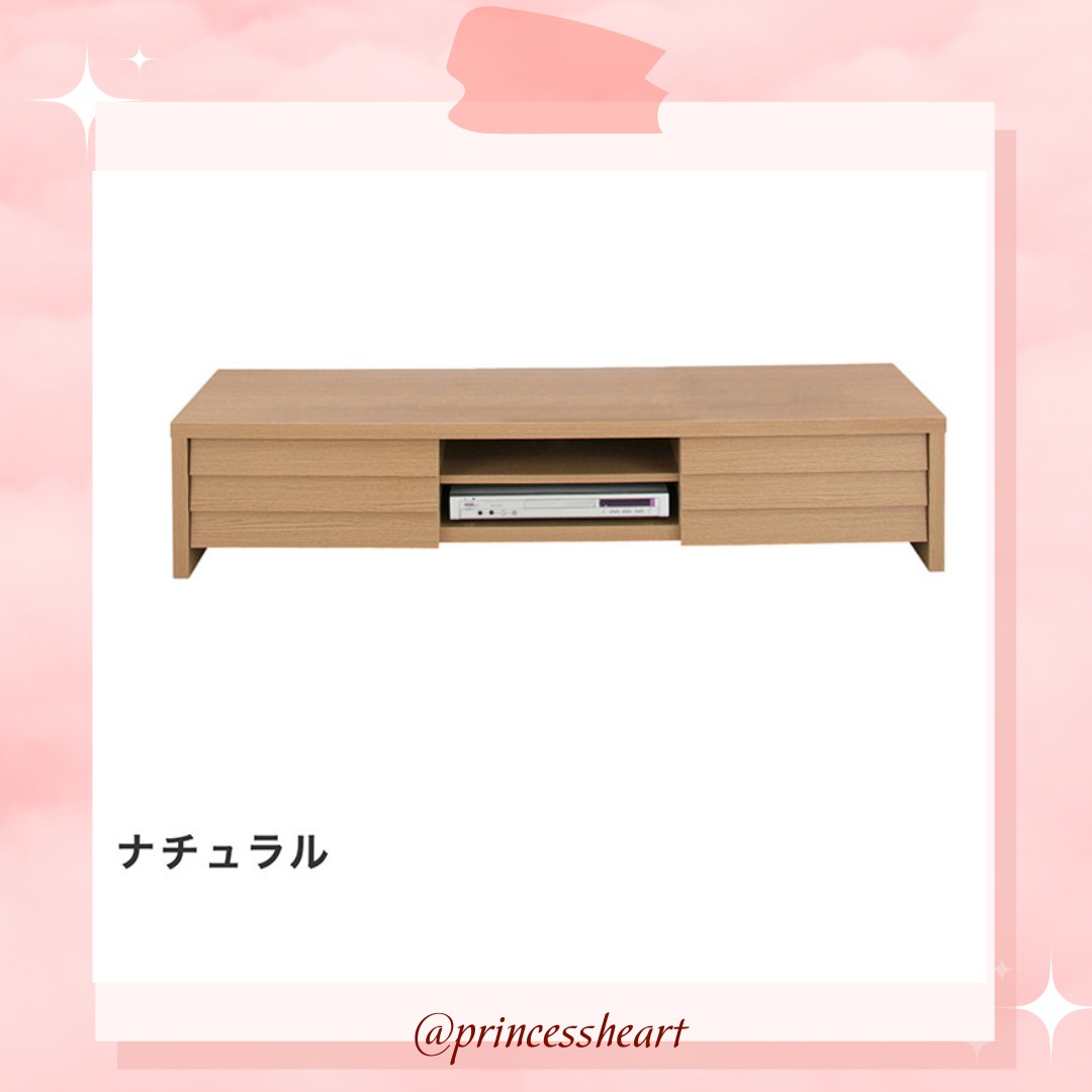 🟫左右に引き出しの付いた、木目調のデザインが特徴的なTVボードです。