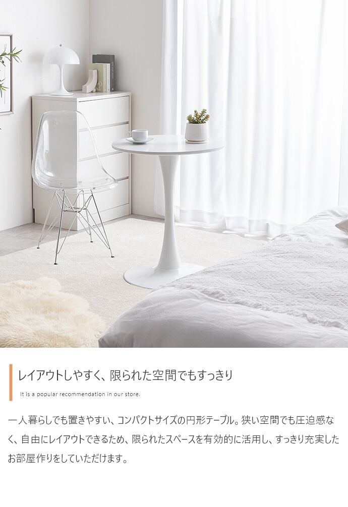 ユニークな曲線シルエットと一本脚デザインが、空間に洗練された柔らかさを与えるカフェテーブル。コンパクトながら実用性に優れ、限られたスペースでも簡単にレイアウトが可能です。またラウンド型の天板は視線を自然に集め、会話を弾ませてくれます。幅広いシーンでインテリアと快適な時間が楽しめるデザインです。
