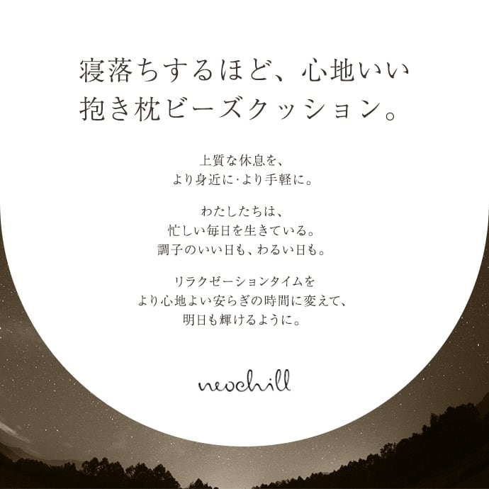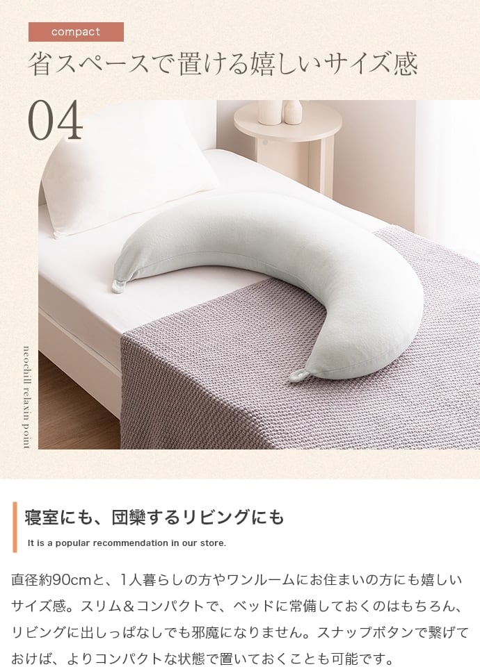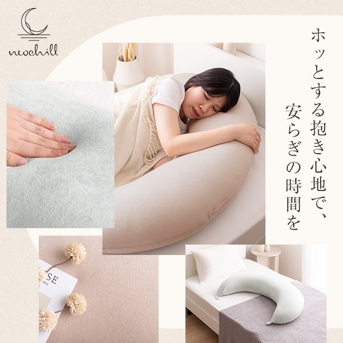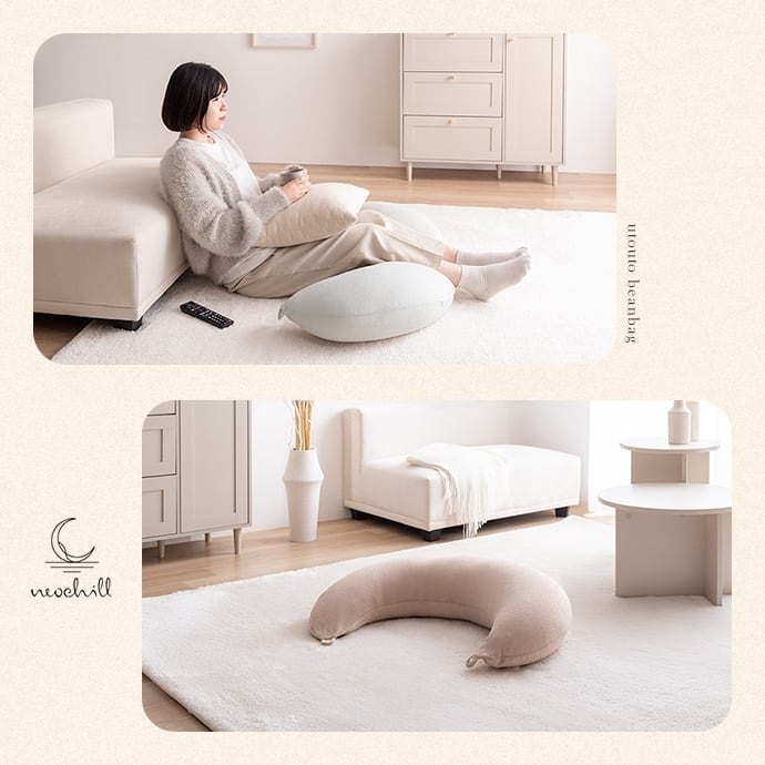 毎日のリラクゼーションタイムを、より心地よい安らぎの時間に変える『Neochill(ネオチル)』シリーズの、utouto 抱き枕 ビーズクッション。身体に寄り添うようにフィットする月型形状がホッとするような安心感を与えてくれます。また極小ビーズがあらゆる体勢や体形に優しくフィット。包み込まれるような極上のくつろぎ時間をお過ごしいただけます。カバーは当店オリジナルのくすみカラーでインテリアに馴染みやすく、ご家庭での洗濯も可能なので、いつでも衛生的にお使いいただくことが可能です。