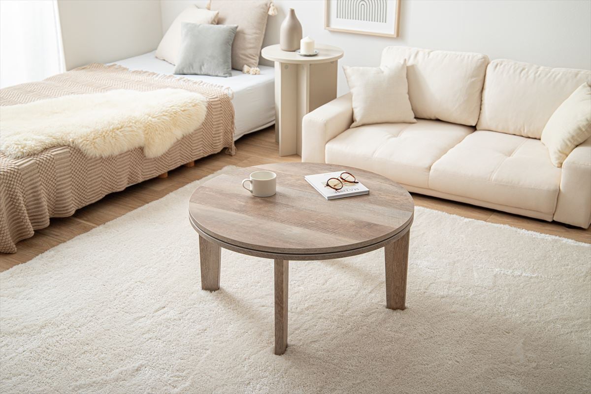 コンパクトサイズでお部屋に省スペースで置けるこたつテーブル。ナチュラルな2色のオリジナルカラーが、お部屋を洗練された印象にさせつつすっと馴染みます。こたつとしてもローテーブルとしてもお使いいただけるので、1年中使用可能です。また、薄型ヒーター採用で足を入れても窮屈に感じることなく、温かくゆったり快適にお過ごしいただけます。