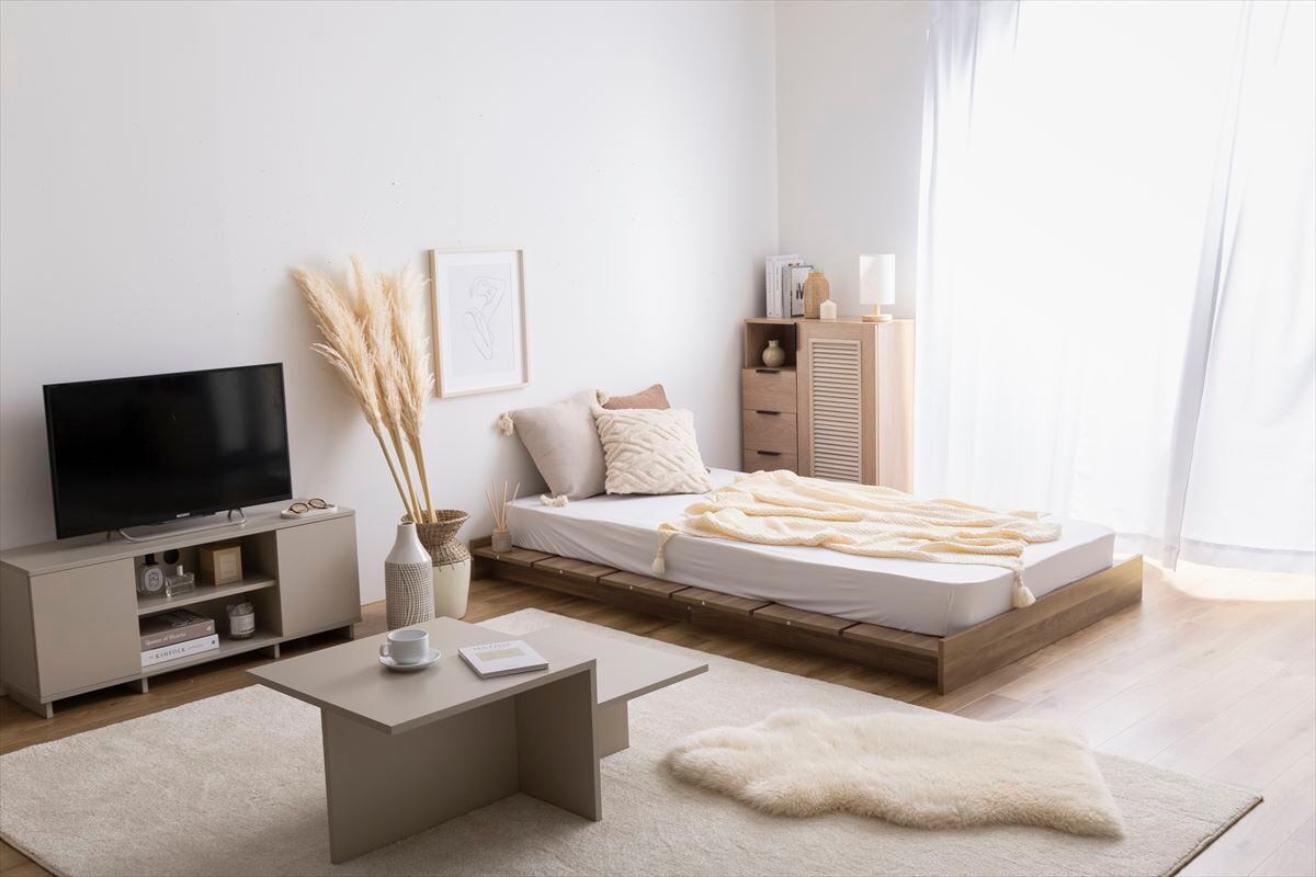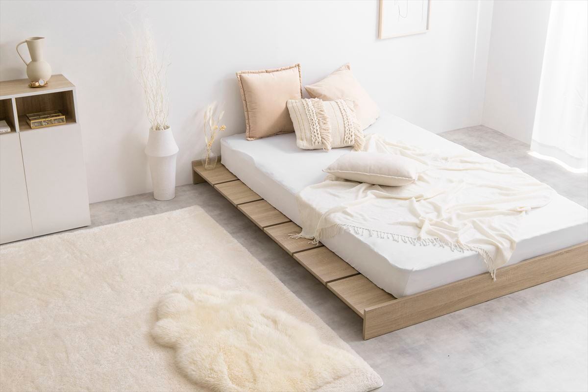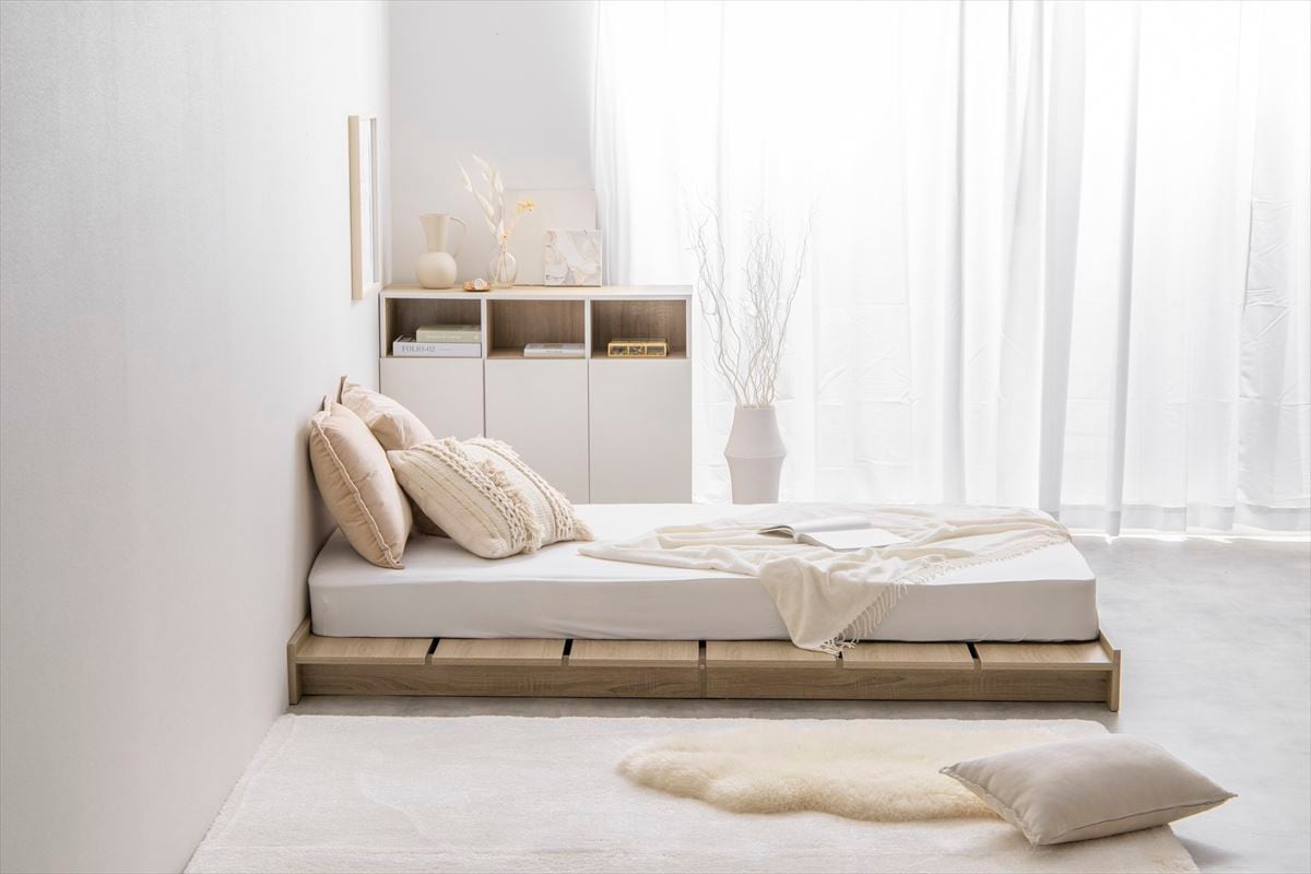 好きなスタイルで使えて、人気のロースタイルのお部屋も作れる『Yuseong(ユソン)』幅広すのこローベッド。マットレスのサイドにはスペースができる幅広設計で、小物や本などを置いていただけます。また、ロータイプで空間を広く見せることができるので、ワンルームやスペースに余裕のないお部屋にお住まいの方にもおすすめです。