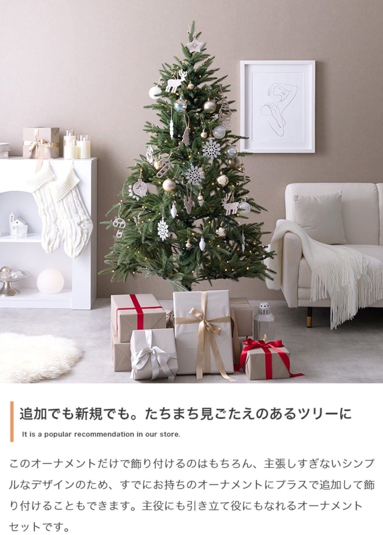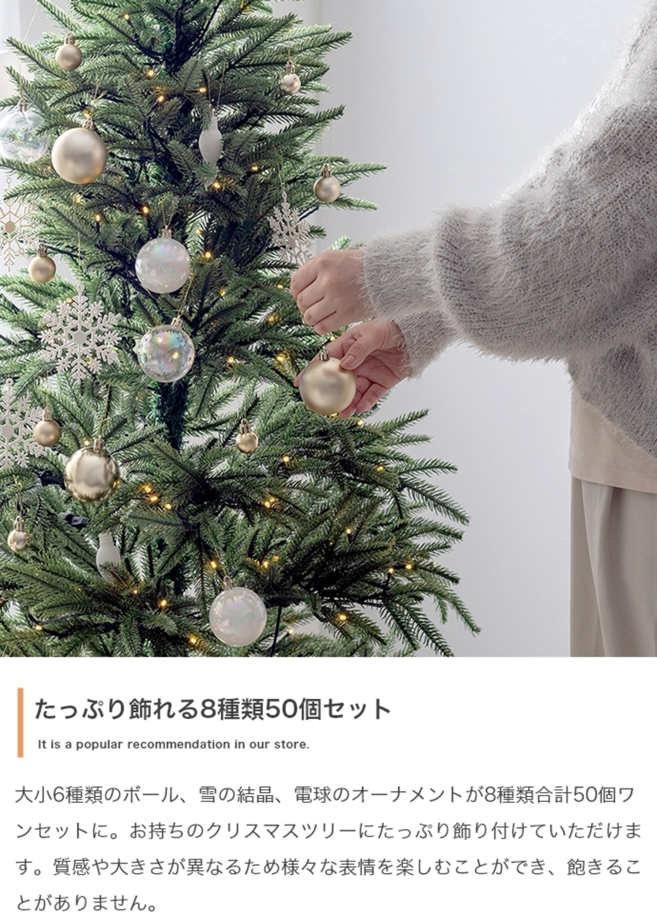 ワンセットでクリスマスツリーを華やかに彩る『Bloom(ブルーム)』オーナメント50個セット。大人ゴールド×ホワイト×オーロラの組み合わせは、トレンド感を取り入れつつクリスマスムードを盛り上げるカラー。たっぷり50個セットなので、飾るだけでたちまち見ごたえがあるツリーに。クリスマスの特別なひと時を演出します。
