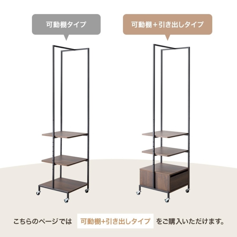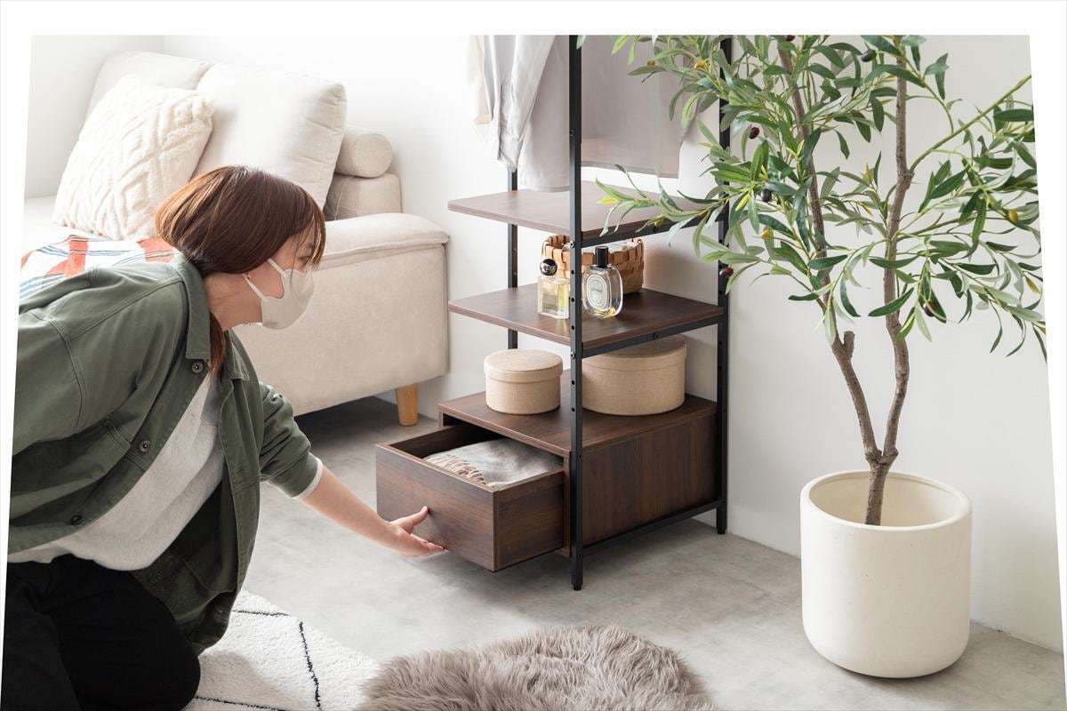 【幅40cm】Tito 引き出し付きスリムハンガーラック