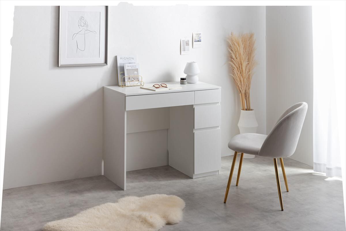 【幅90cm】引き出し付きコンパクトデスク※現在ホワイトカラーのみ