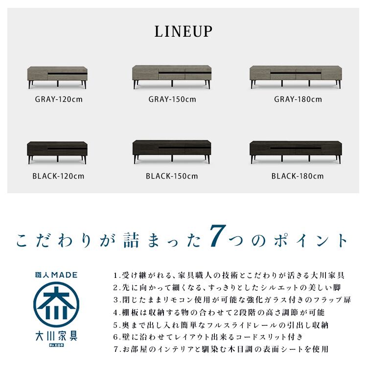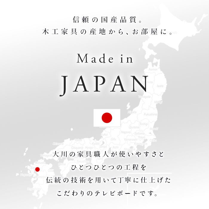 大川の家具職人が使いやすさとひとつひとつの工程を伝統の技術を用いて丁寧に仕上げた、こだわりの日本製テレビボードです。