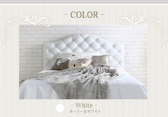 ボタン止めのキルティングヘッドボードがエレガントな雰囲気を演出します。