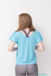 ★【ヨガウェア】FAC-8013T 袖フリルVネックTシャツ