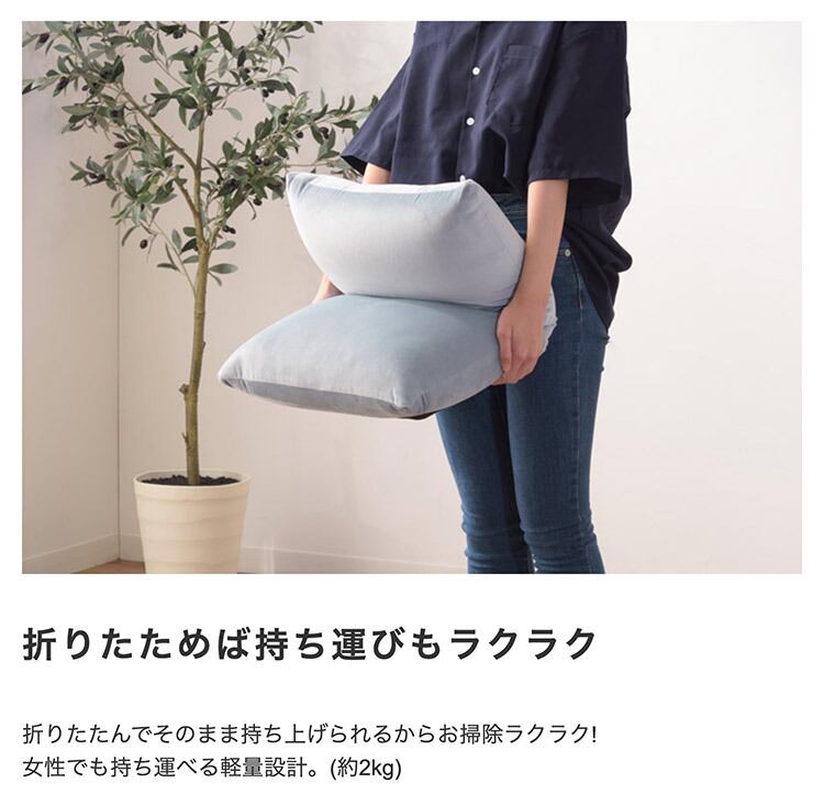 座面と背もたれに綿がぎっしり詰まっているので、床つき感を感じさせません。