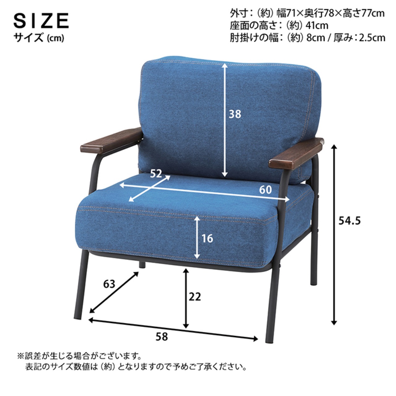サージ【SURGE】スチールフレームのデニムソファー ◇一人掛け