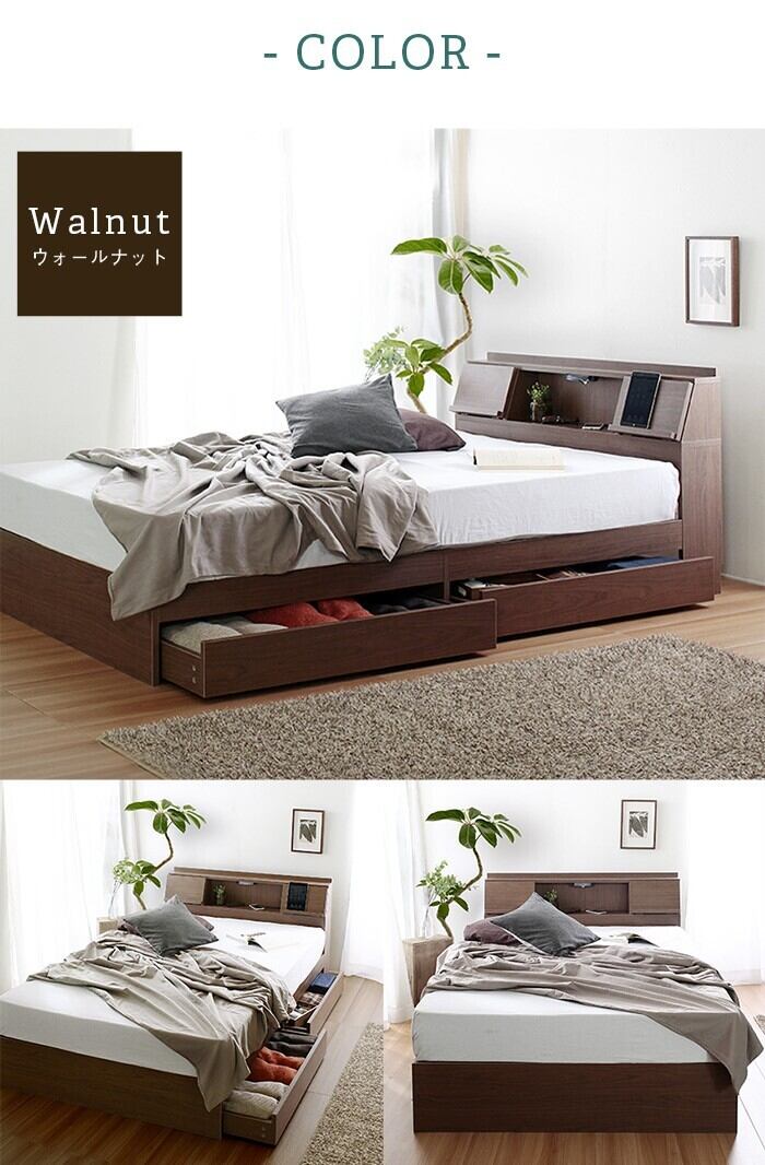まず、USBポートを搭載しており、ベッドに座ったままスマートフォンやタブレットなどの充電が可能です。さらに、ベッドフレーム内部には収納スペースがあり、パソコンや書類などをスッキリ収納できます。