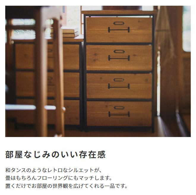 ヘリンボーン柄の天板が美しい、天然杉素材を使用したチェストです。