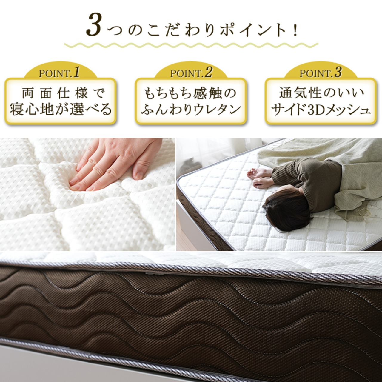 裏表で寝心地の印象も変わり、お好みでお選び頂けます。