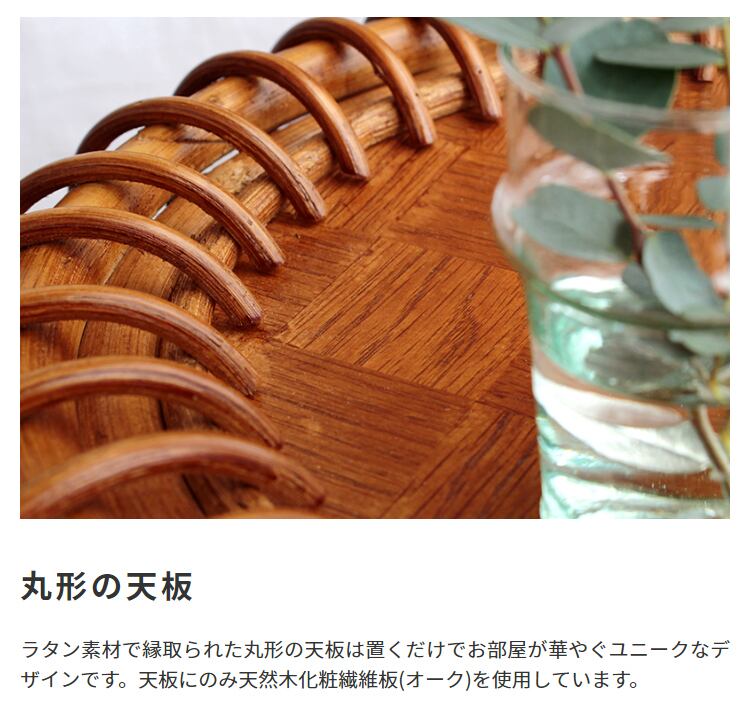 天然木とラタンのラウンド型サイドテーブル
