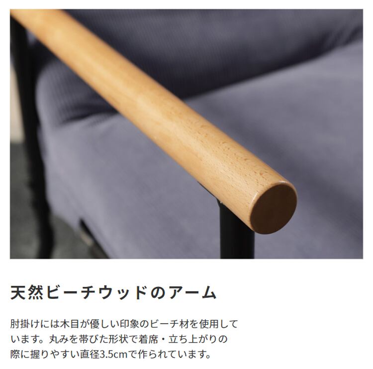 肘には温かみのあるビーチウッドを使用し、座面には体圧分散に優れたポケットコイルを使用しています。