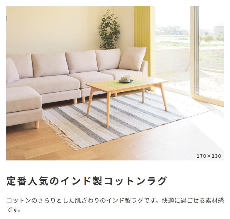 モダンなストライプ柄 人気のインド製コットンラグ