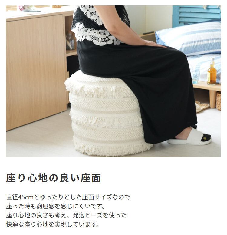 デスクチェアやドレッサーのスツールとしてはもちろん、ソファの横に置いてオットマンとしても使用できます。