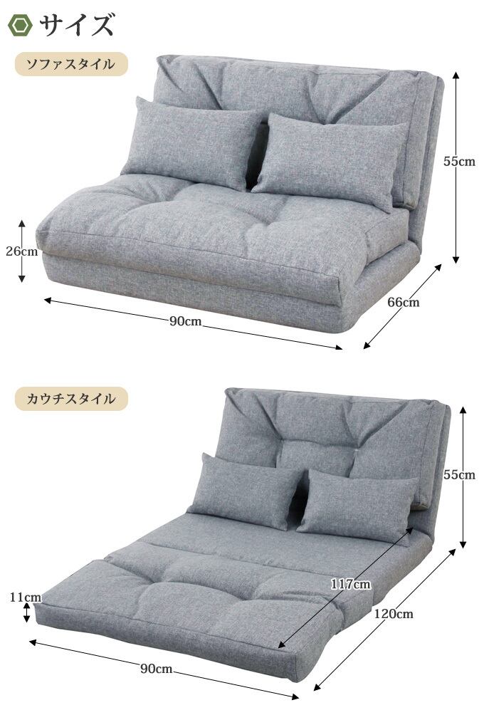 14段階リクライニング機能付きで、ソファー・カウチ・ベッドスタイルと