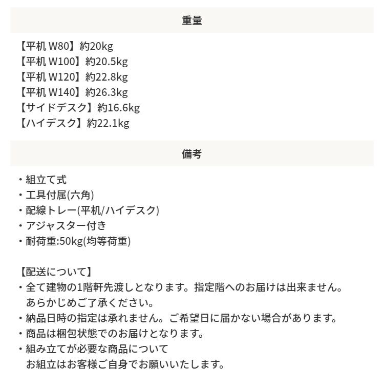 平机80~140/サイドデスク/ハイデスクからお部屋の間取りに合わせてお選びいただけます。