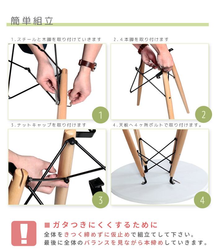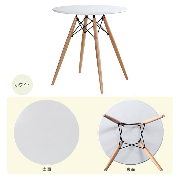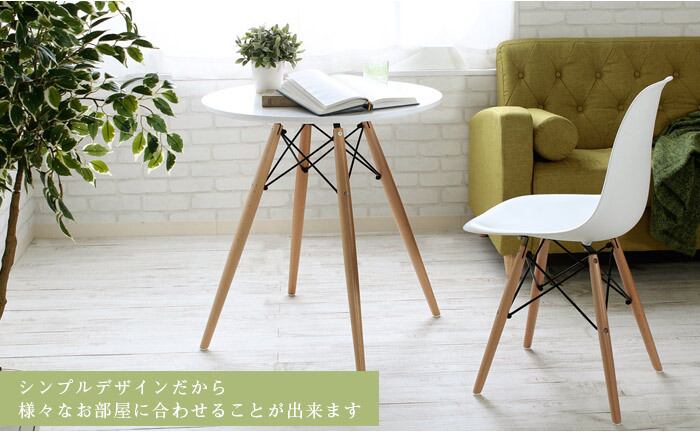 イームズシェルチェアのデザインを取り入れたウッドレッグラウンドテーブルです。天然木の温かみがありながら、シンプルでモダンなデザインが特徴。シェルチェアとの組み合わせはもちろん、他のチェアとも相性抜群です。