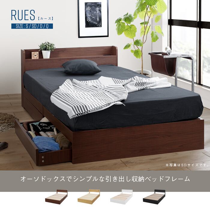 RUES【ルース】クイーン/棚・コンセント付き収納ベッド オリジナル