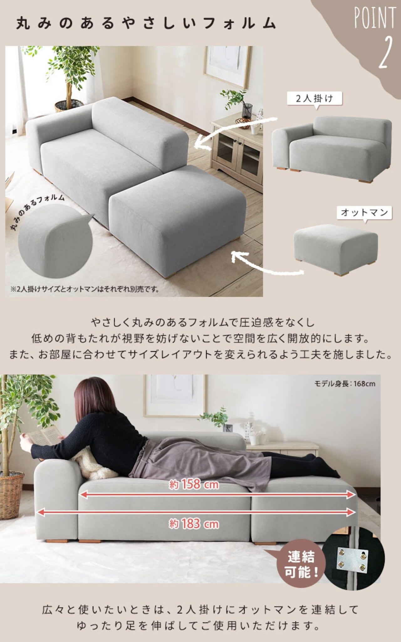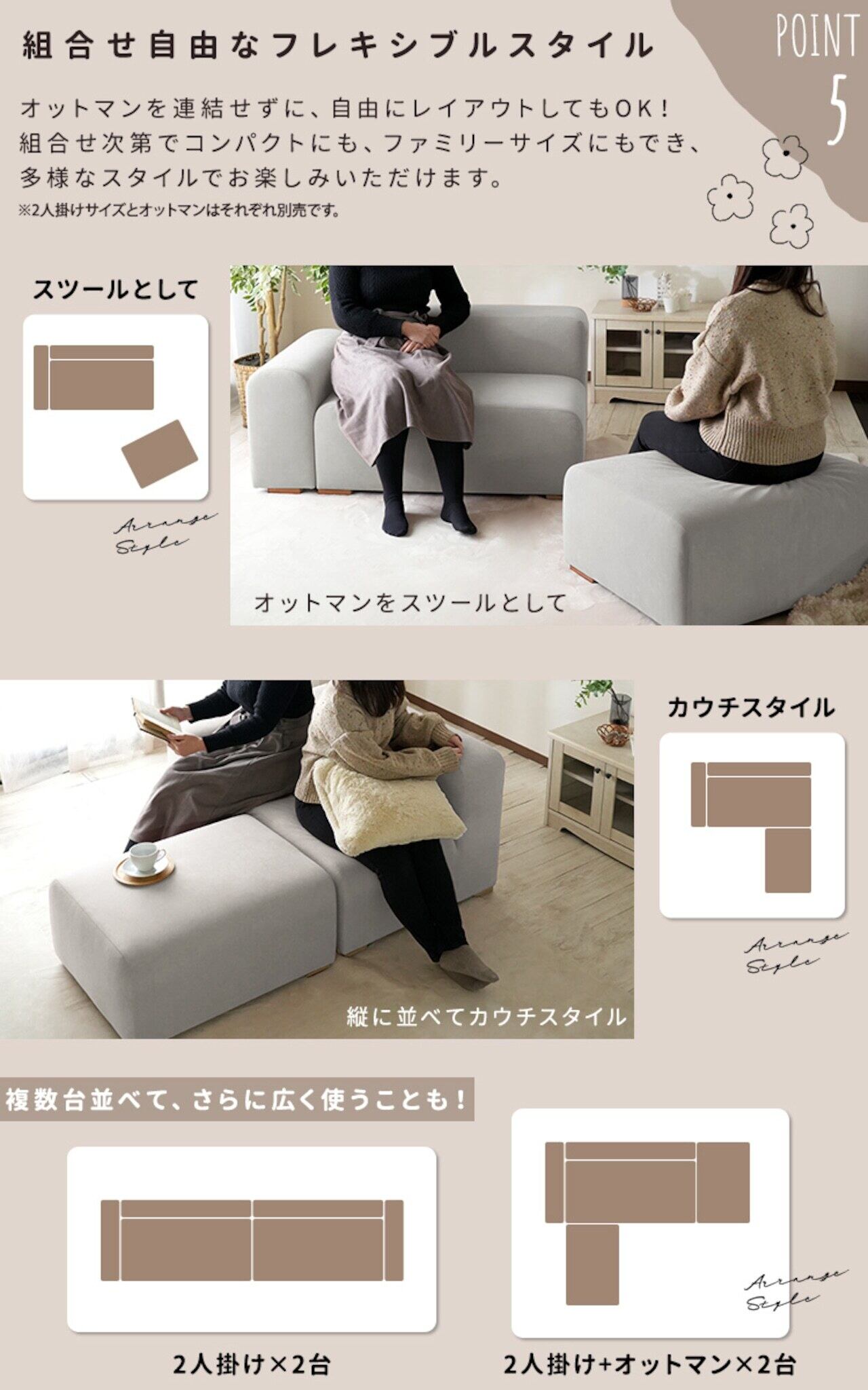 ※2人掛けサイズとオットマンはそれぞれ単品販売です。