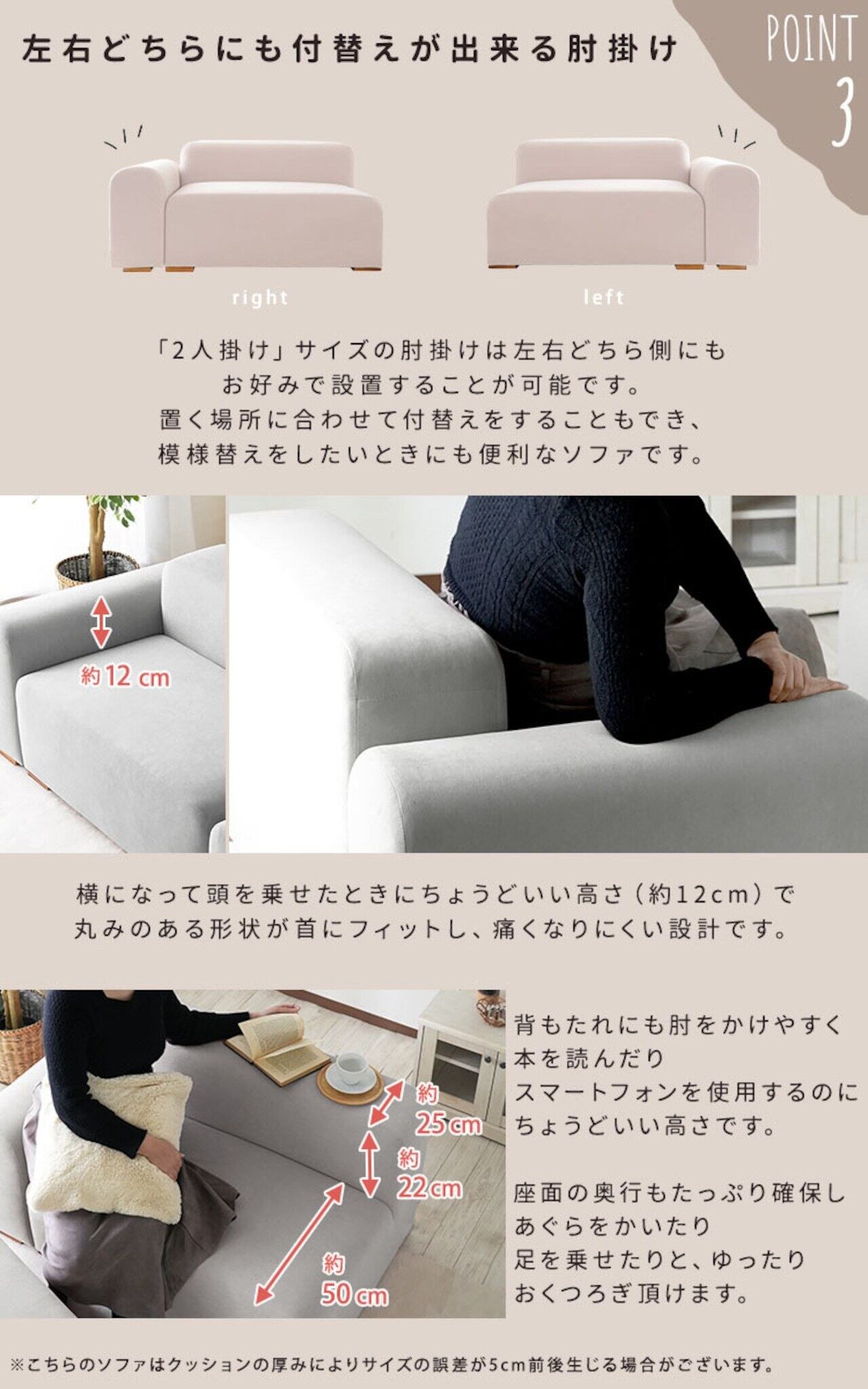 2人掛けサイズの肘掛けは、左右どちら側にも