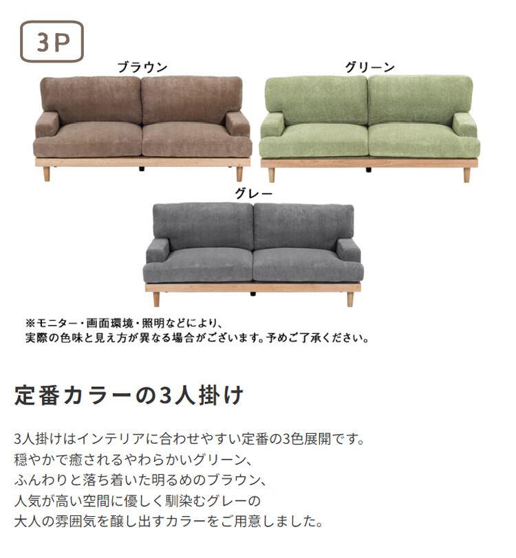 6カラーの2人掛けと3カラーの3人掛けから、お部屋の間取りや
